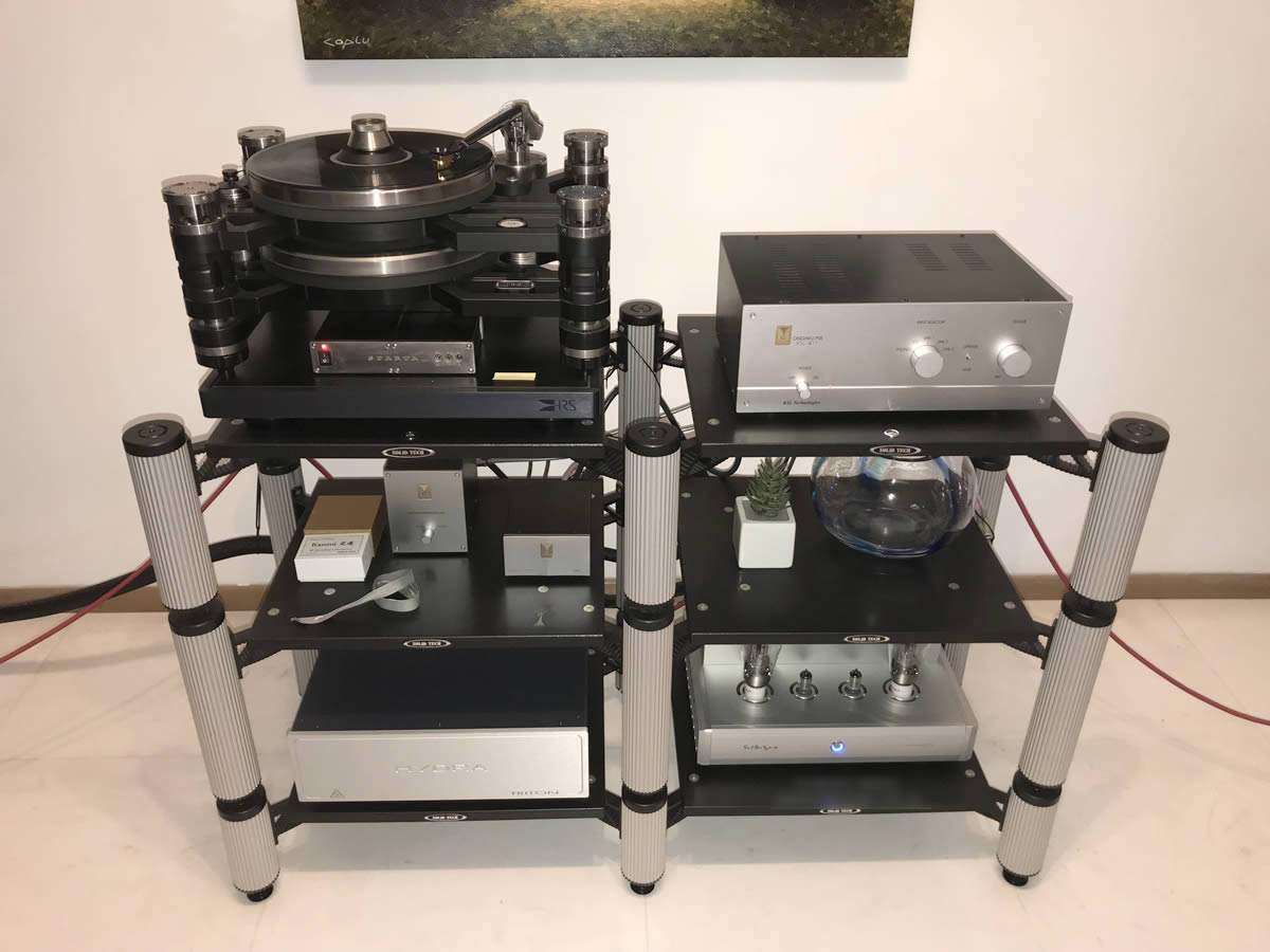 A full analogue system featuring Kronos Sparta and Helena arm combo, Kondo M-77, Silbatone P-105 power amp and Horns FP-15 horn-loaded speakers. Truly a combination of dynamics, power and grace in one beautiful package.