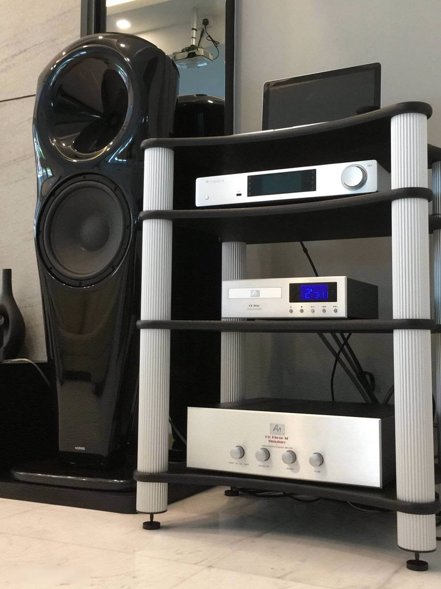 Another system with the ever popular Horns Mummy speakers. An affordable speaker design that’s tube friendly and aesthetically pleasing at the same time.