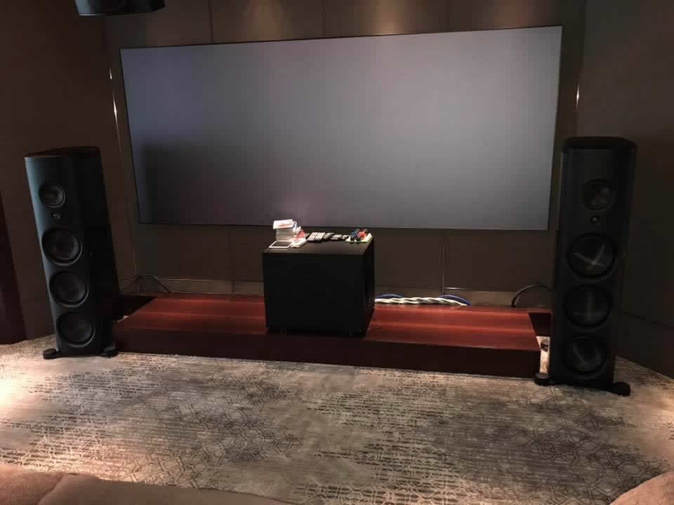 Magico M Project speakers with Q Sub in a customer's home theatre system, driven with Soulution electronics.