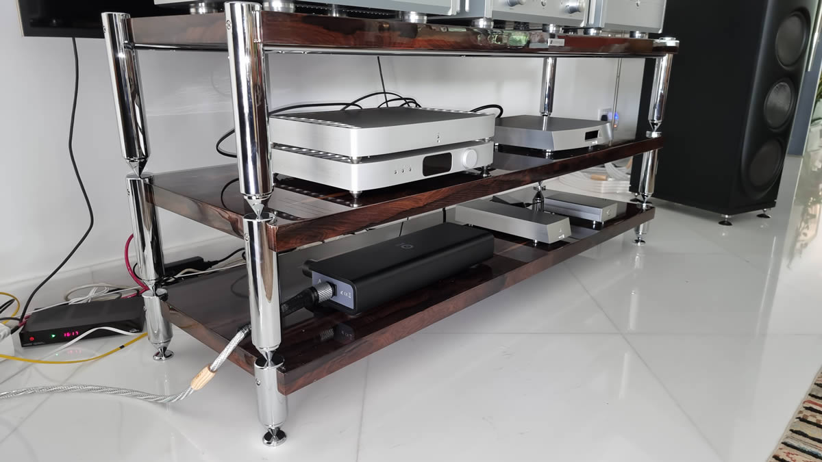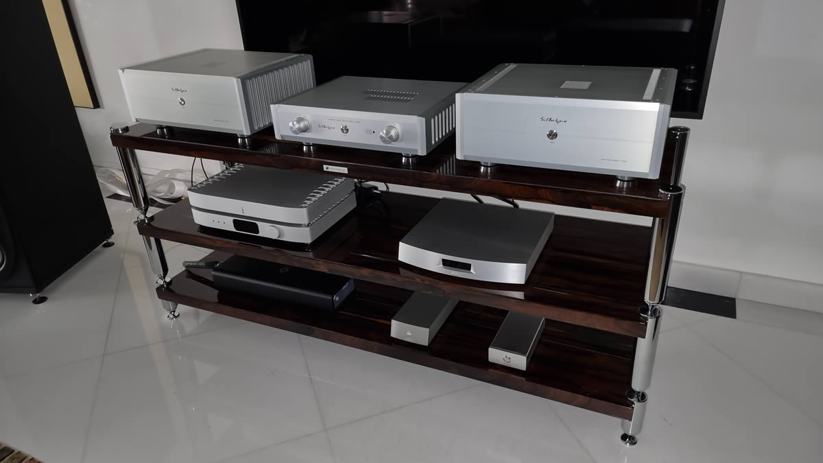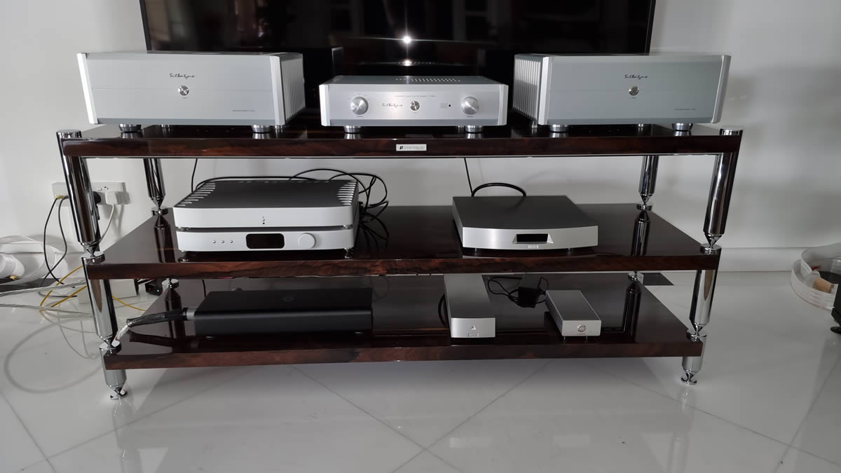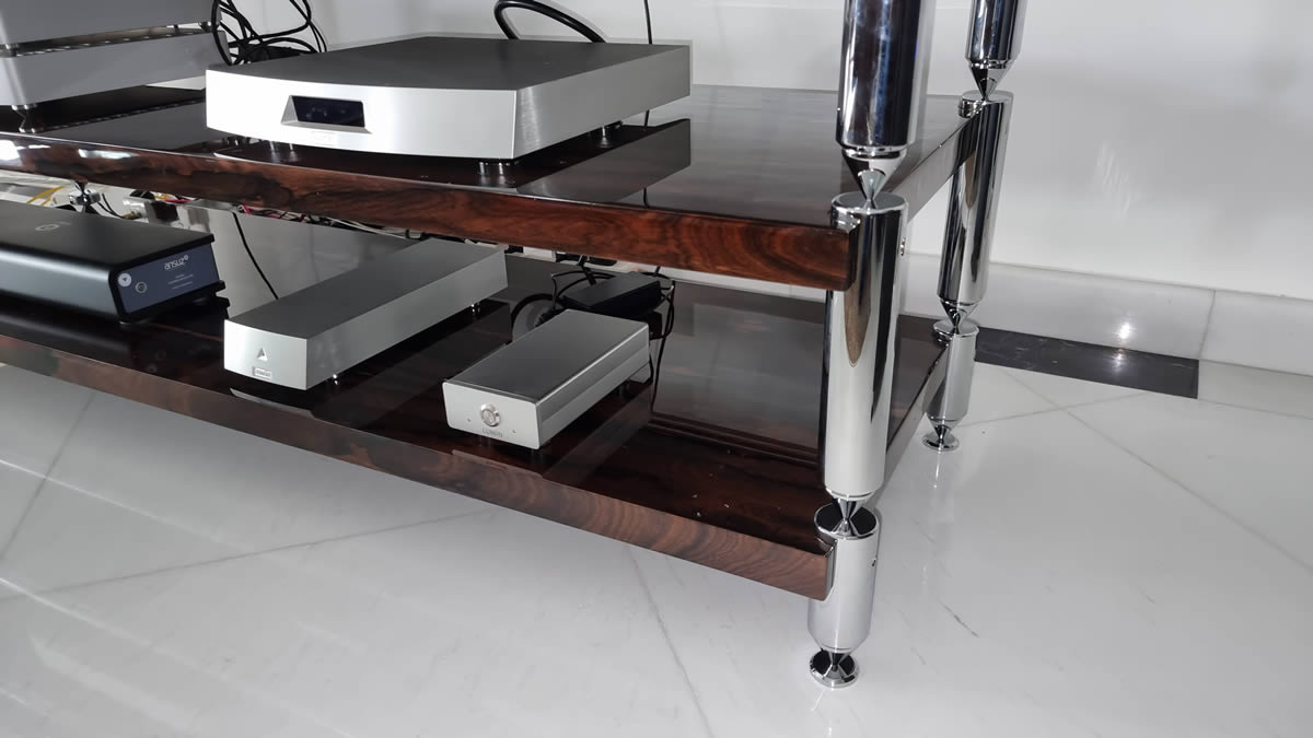 Another installation of Audio Philar's Signature series audiophile racks in a happy client's home. Truly world class fit and finish with piano lacquer wood shelves and solid stainless steel pillars. Build quality that'll literally last you a lifetime!