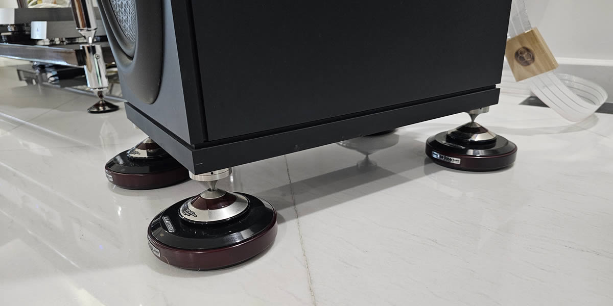 Silbatone latest L-107 MK3 preamp and P-107M monoblock power amps, driving Magico Q5 loudspeakers. System is also fully kitted out with Harmonix Million Series footers and isolation devices.