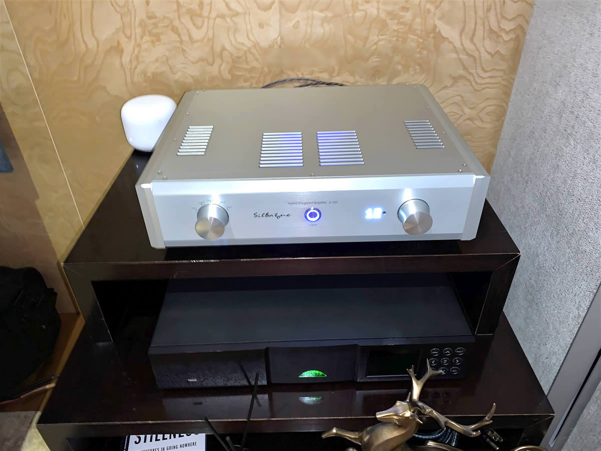 Simple but very high quality set up in owner's bedroom, consisting of a digital streamer and