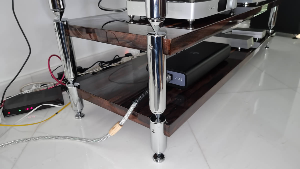 Another installation of Audio Philar's Signature series audiophile racks in a happy client's home. Truly world class fit and finish with piano lacquer wood shelves and solid stainless steel pillars. Build quality that'll literally last you a lifetime!