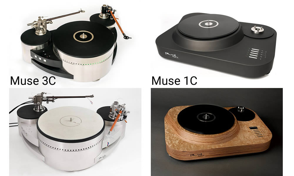 Reed Muse 3C: After extensive prototyping and long-term experiments we came up to a solution of using a reverse sliding thrust ball bearing for a main axis. Bearing ball is made either from steel or ceramics and the lateral stability is achieved by using very durable and low-noise polymer sliding bearing. Symmetrical drive system is designed to avoid radial bearing load, hence minimizing possible mechanical noise and ensuring longevity of a master bearing. Muse 3C is powered by two direct current motors and by design is friction-driven, however its major innovation is possibility to convert it to a belt-driven system in minutes by replacing traction rollers and putting on a belt (and, of course, setting a switch to a correct position).
